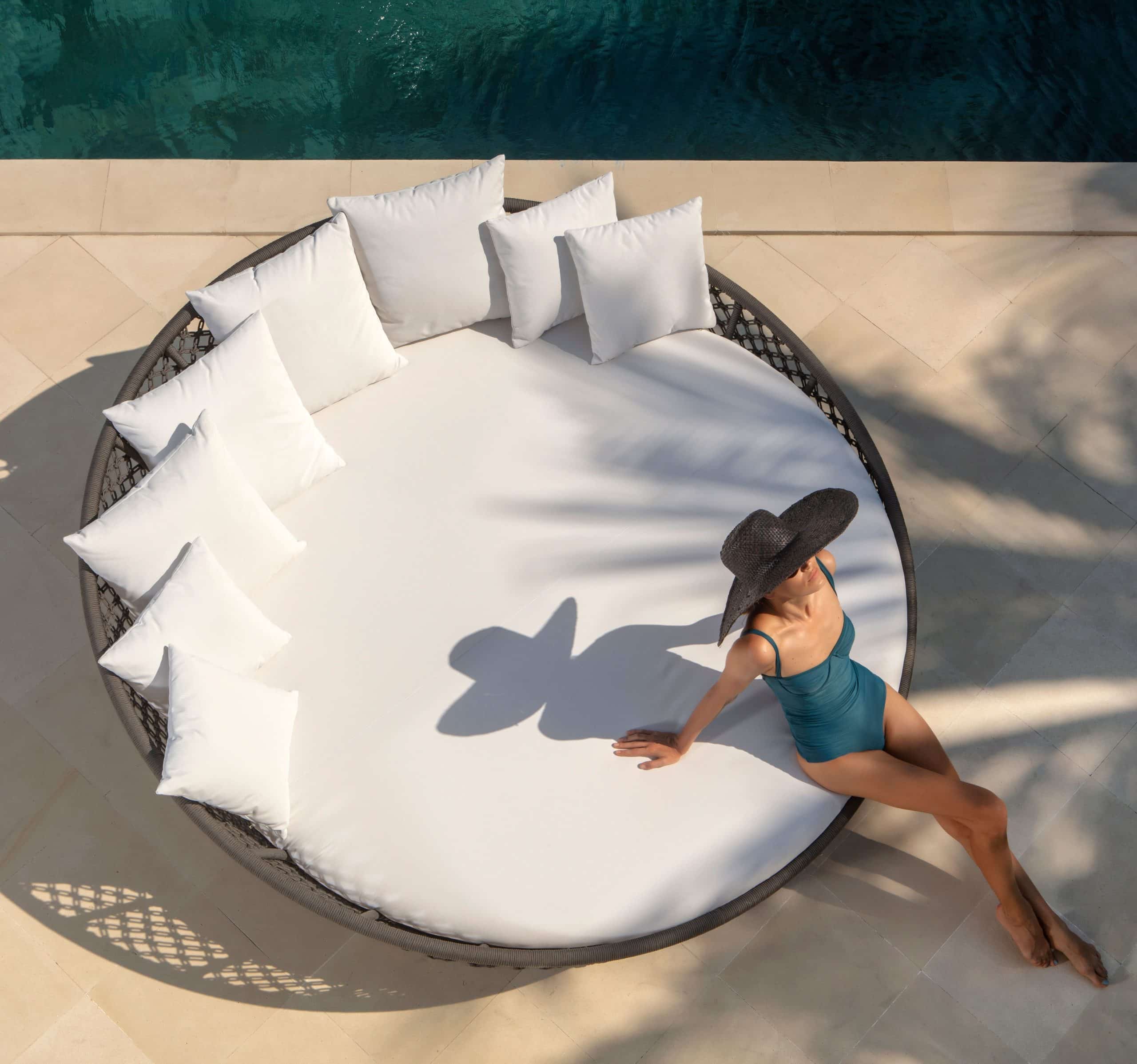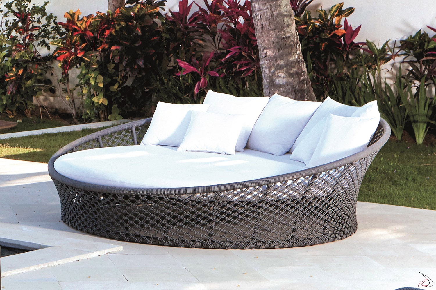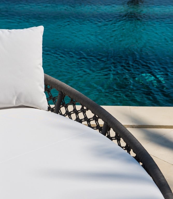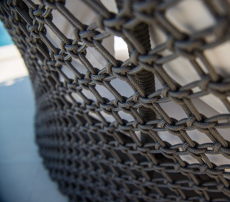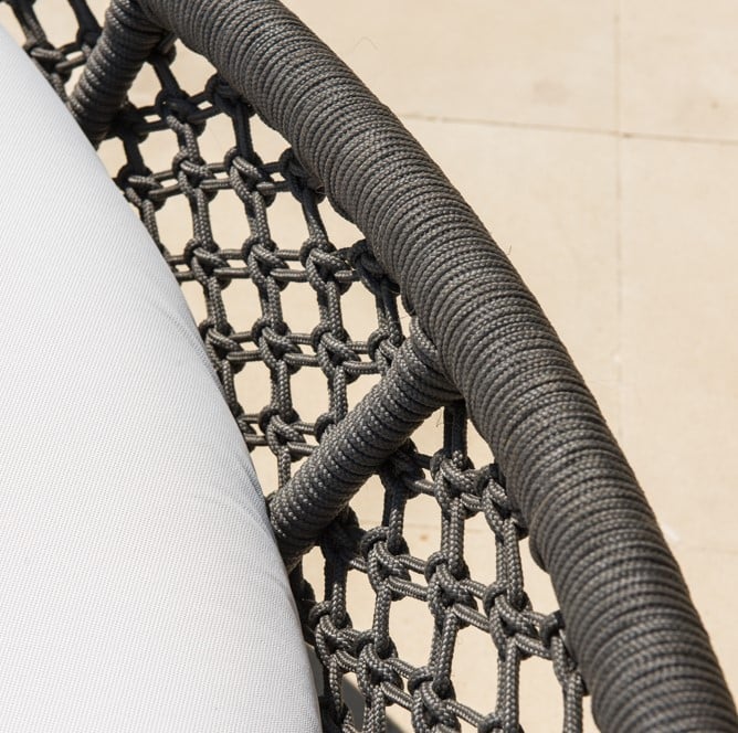 Ażurowy splot mocnej liny wykonanej z włókna syntetycznego w kolorze ciemnoszarym, niezwykle odpornej na wszelkie warunki pogodowe – to wyjątkowa cecha mebli ogrodowych z kolekcji MOMA.