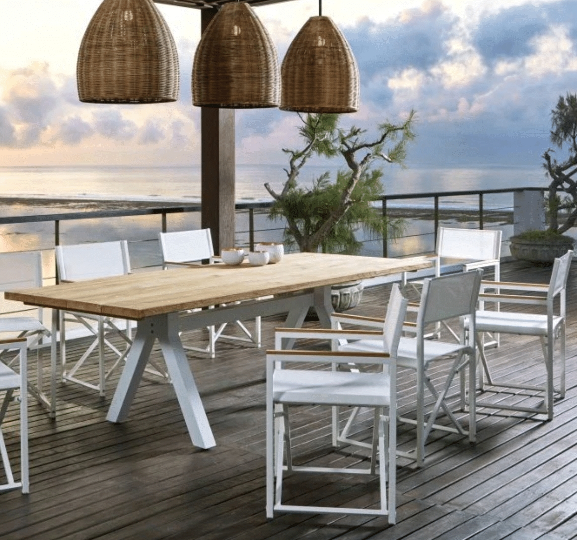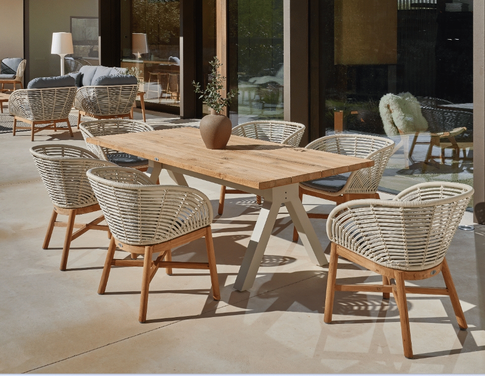 Kolekcja mebli ALASKA to udane połączenie białego technorattanu z elementami naturalnego drewna tekowego oraz grubymi, miękkimi poduchami. Rewelacyjny do ogrodu, na taras oraz do wszystkich wnętrz mieszkalnych.