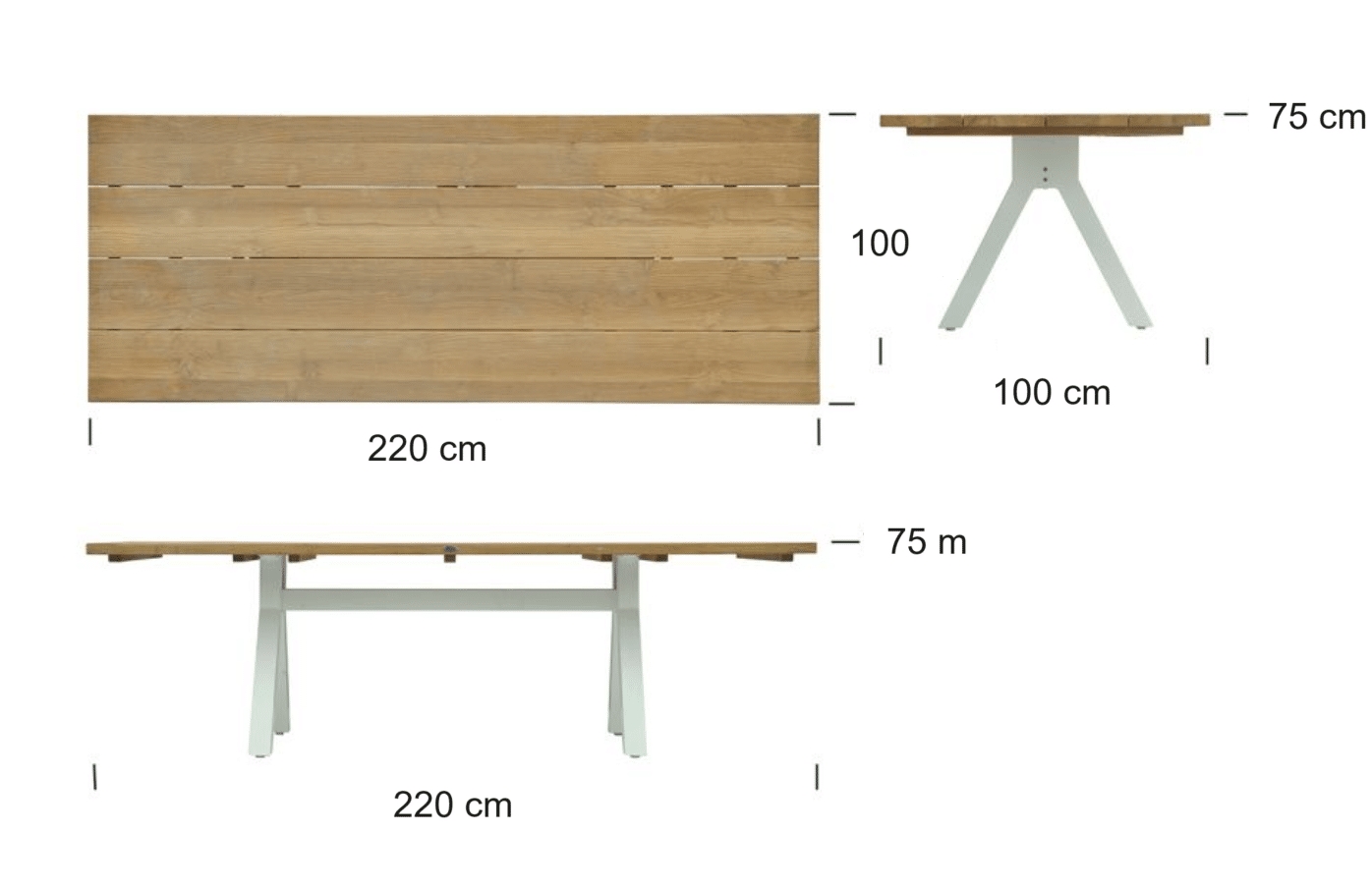 Blat stołu wykonany jest z naturalnego drewna tekowego.