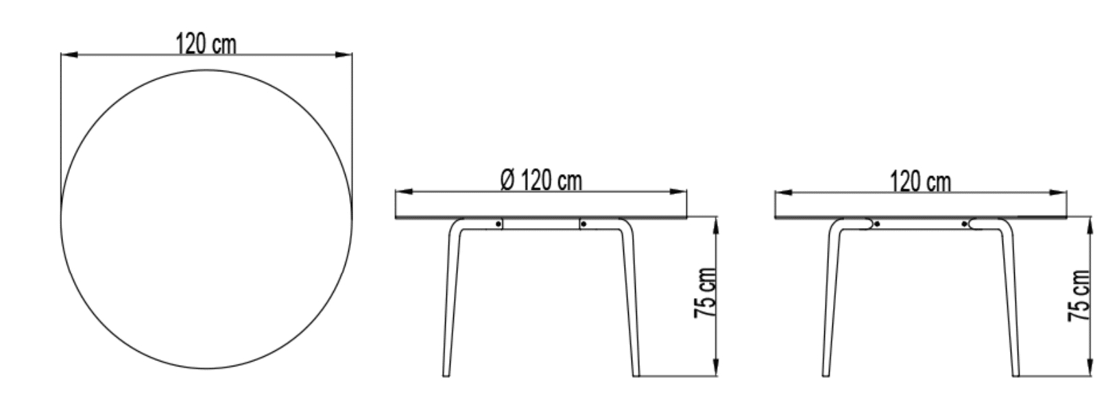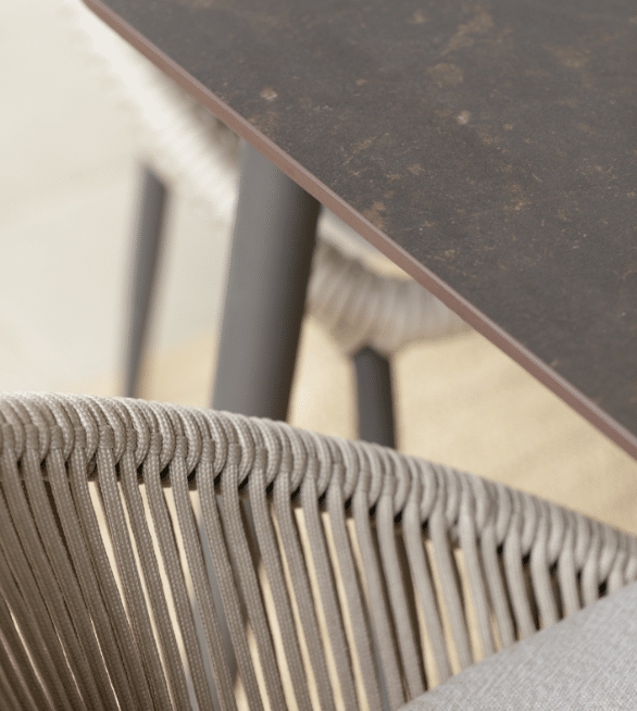 Rama wykonana jest z malowanego aluminium, kolor CARBON MATTE. Blat stołu – gres porcelanowy.