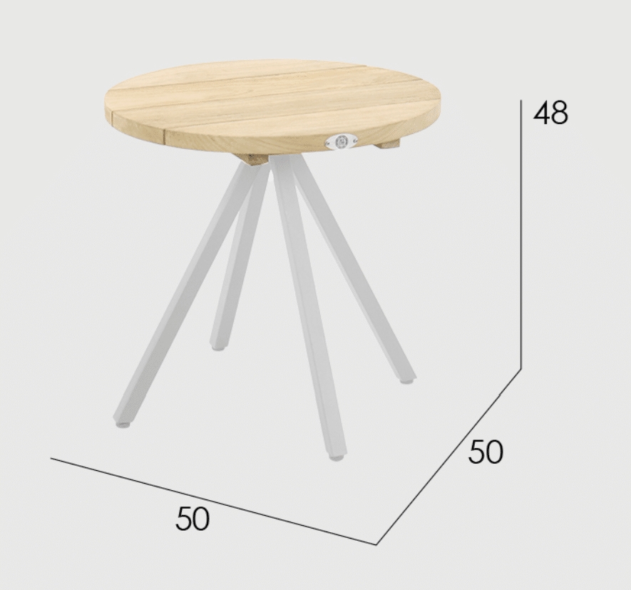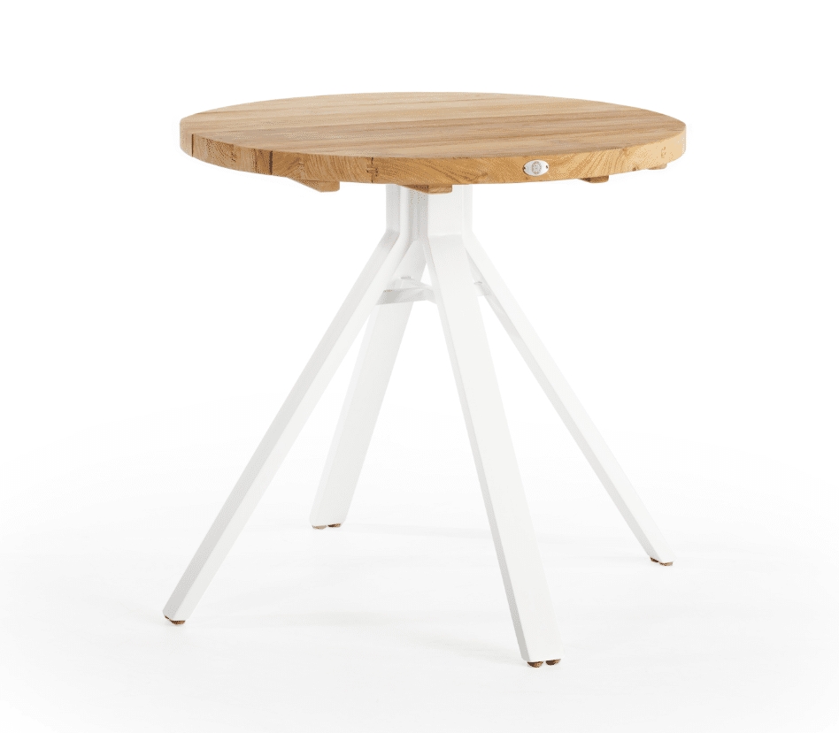 Rama wykonana jest z malowanego aluminium. Blat stołu wykonany jest z naturalnego drewna tekowego.